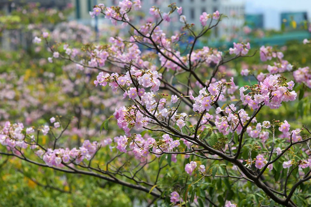 Kèn hồng có màu sắc tựa như hoa anh đào, là một loại hoa thường nở vào đầu tháng 4 và kéo dài cho đến tháng 6 mỗi năm.