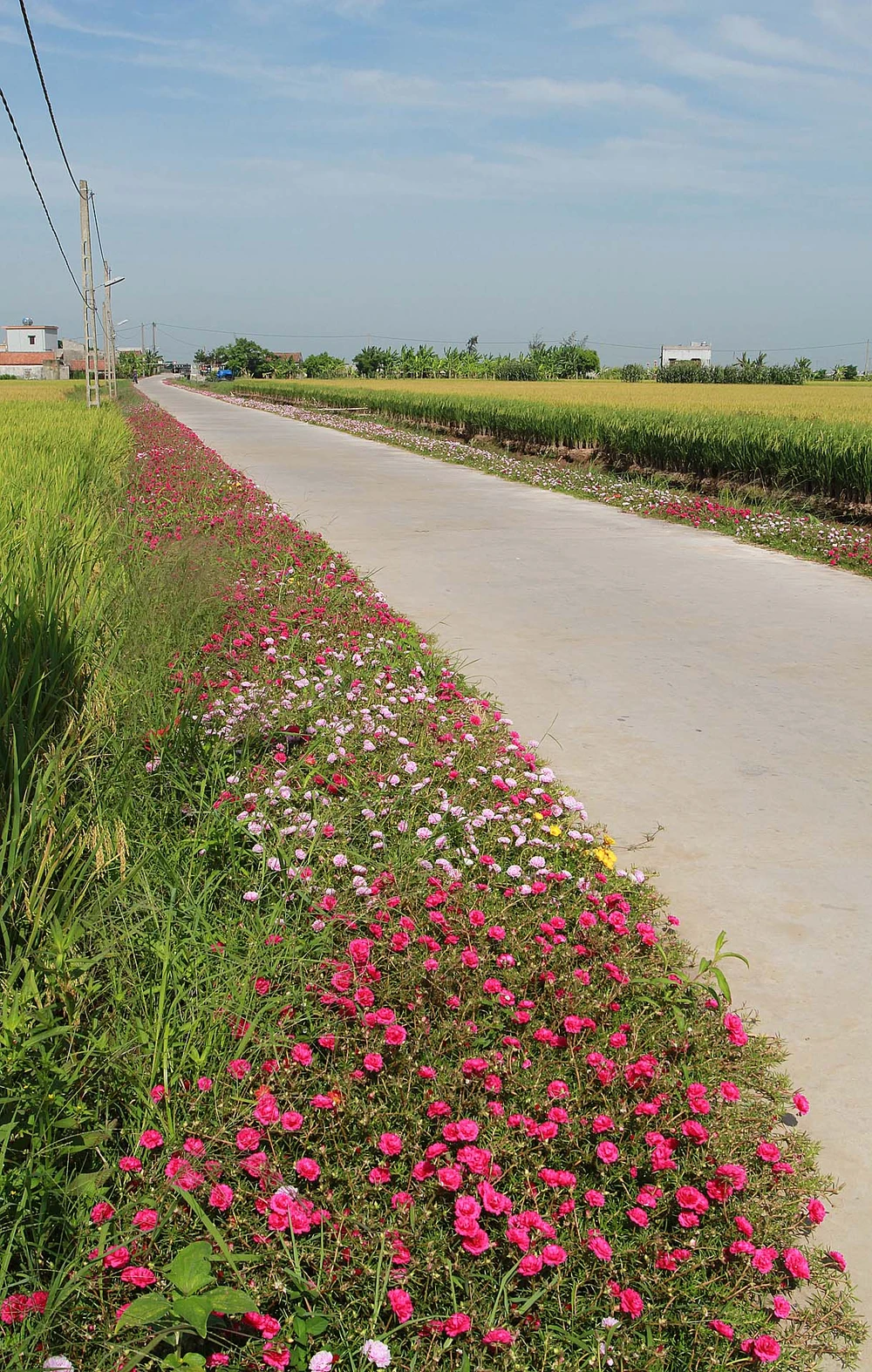 Phong trào trồng hoa làm đẹp đường làng đã có từ vài năm qua và càng ngày càng được nhân rộng. Cũng chính vì thế mà phong cảnh làng quê có thêm mảng màu rực rỡ bên cạnh lúa vàng, rau xanh...