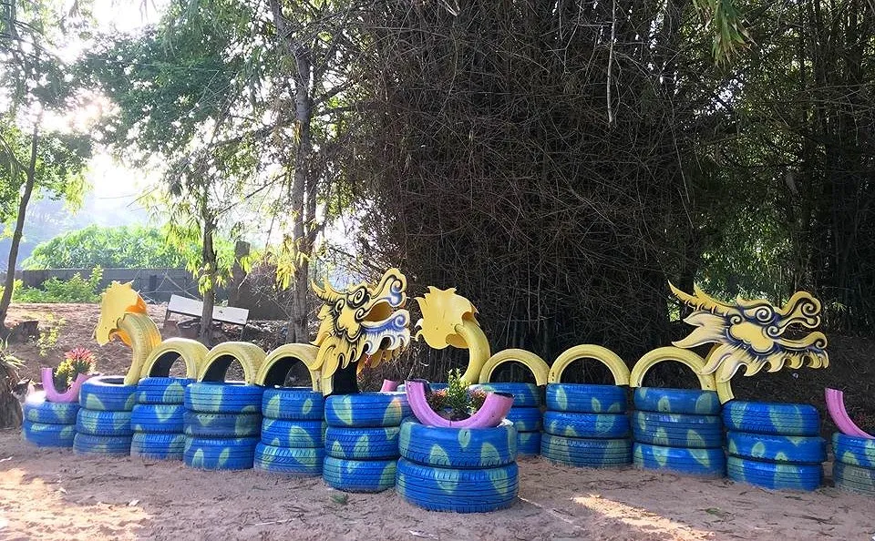 Khá nhiều hình ảnh ngộ nghĩnh được đặt hai bên lòng suối.