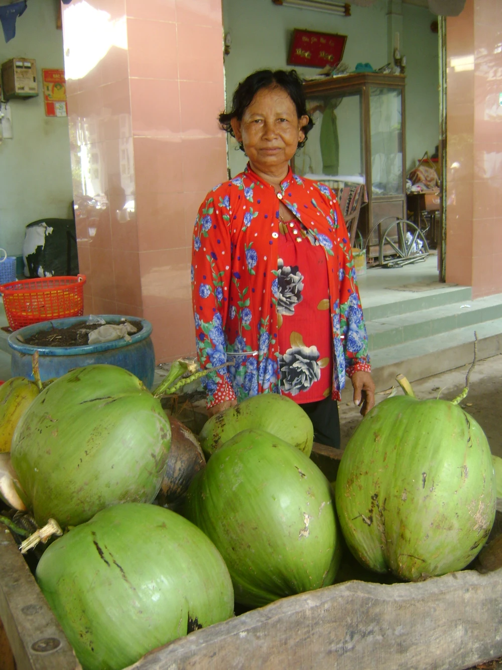 Sau khi mua được dừa khủng, vợ ông đem quầy dừa ra chợ Phú Tâm bán. Nhìn thấy quầy dừa to, nhiều người đi chợ đã dừng lại xem thử và hết sức ngạc nhiên. Có người không tin vội đem chúng lên cân thử thì bất ngờ khi thấy mỗi trái nặng gần đến 8 kg.