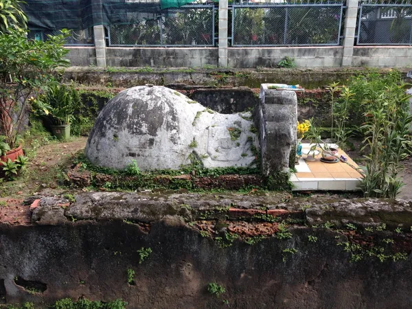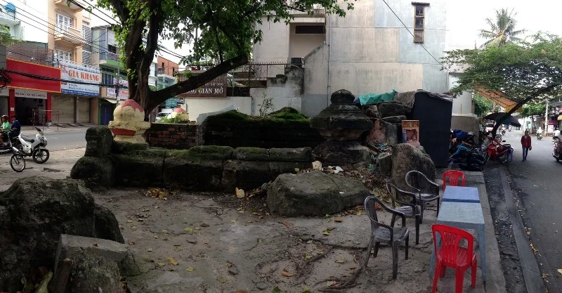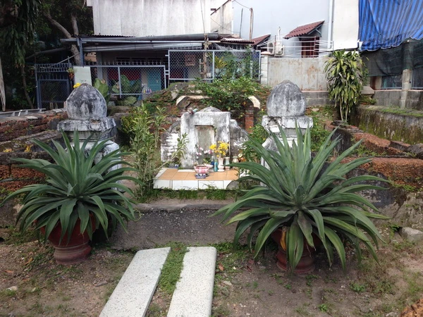 Tuy vậy ngôi mộ không khỏi cảnh hoang tàn khi lá khô, cây mục và nhiều thứ rác khác đọng lại trên mộ. Đã vậy, người dân tận dụng khoảng vỉa hè sau mộ để kinh doanh, trông càng mất mỹ quan.