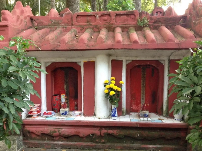 Mộ nhỏ trong sân thờ, phía tay trái. Sân thờ hình chữ nhật (7,6 x 2,2 m) có tường bao tạo dáng bệ ghế (tràng kỷ) (dài 220 cm, dày 60 cm). Đỉnh mái bảy ống ngói và hai khối hợp chất giật cấp hình voi phục cách điệu ôm cặp trụ cổng.