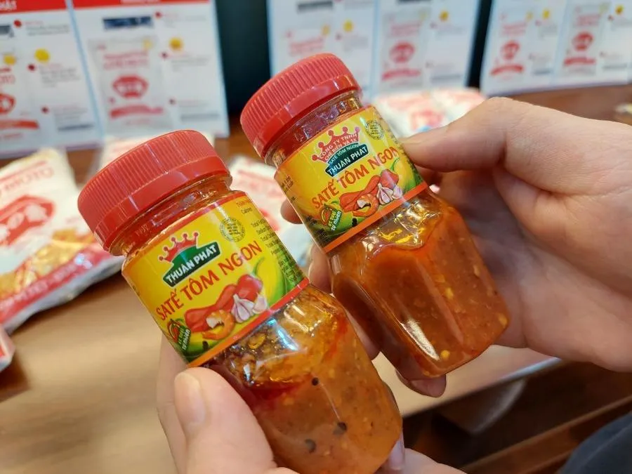 Với sa tế Thuận Phát, nếu là hàng thật thì không in chữ trên logo, vương miện. Nhưng với hàng nhái thì trên vương miện thương hiệu có in chữ "Công ty TNHH chế biến và sản xuất sa tế tôm ngon Thuận Phát". Thủ đoạn làm nhái này khá tinh vi, người tiêu dùng rất khó để phân biệt.