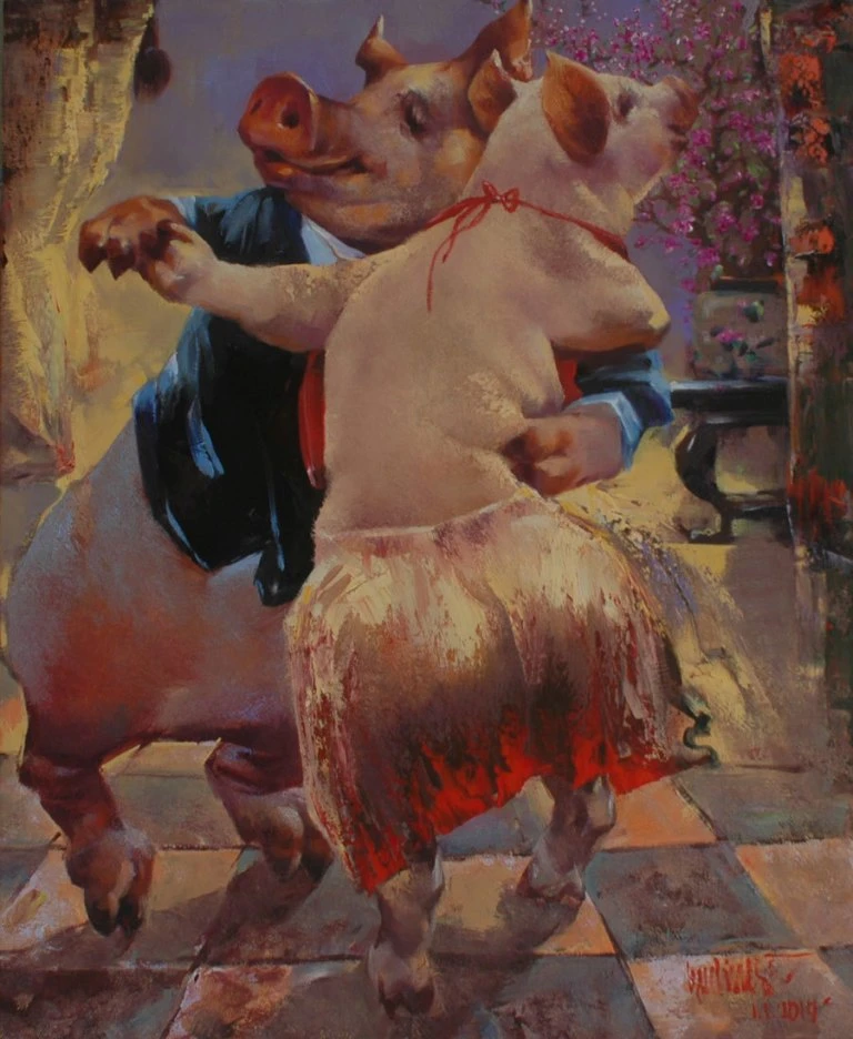 Tác phẩm "Đời heo" của họa sĩ Vũ Dũng.