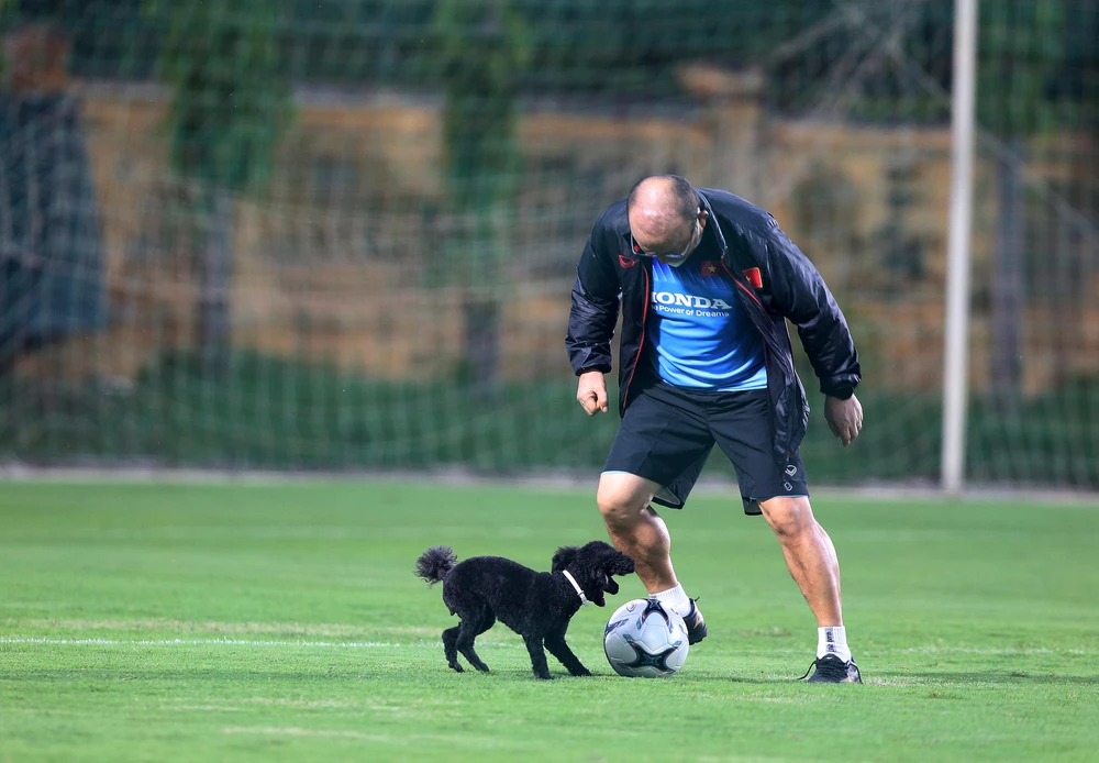 Sau buổi tập, ông Park thường vui vẻ chơi đùa với chú chó con giống poodle "cưng xỉu":