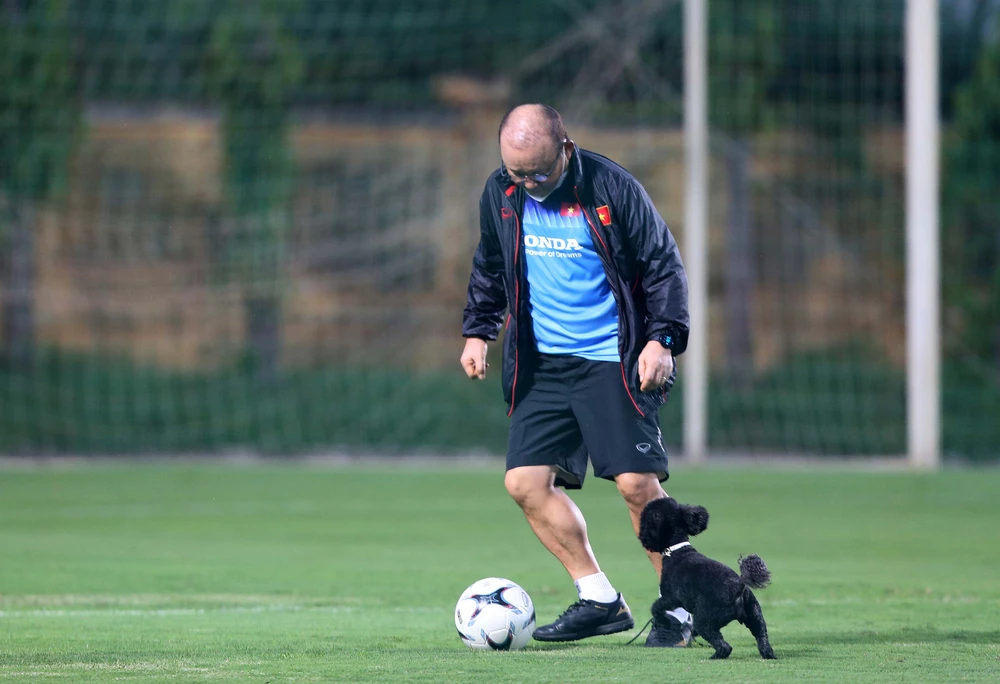 HLV Park Hang-seo thường lùi về phía sau quan sát tổng thể buổi tập của đội U-22 Việt Nam dưới sự chăm lo của các cộng sự thân tín.
