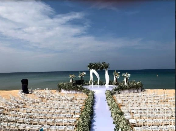 Hôn lễ của cặp đôi diễn ra lúc 17 giờ 30, thời khắc hoàng hôn buông xuống tại một trong những bãi biển đẹp nhất thế giới - bãi Dài trong quần thể Vinpearl Phú Quốc.
