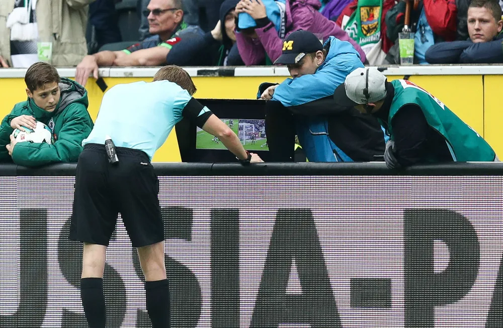 Trọng tài tham khảo công nghệ VAR. nhưng cũng khó tránh khỏi quyết định cảm tính. Ảnh: CGI.