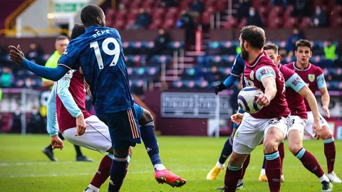 Tình huống Pepe sút bóng trúng tay hậu vệ Burnley phình to bất thường gây tranh cãi ở Premier League. Ảnh: CGI.