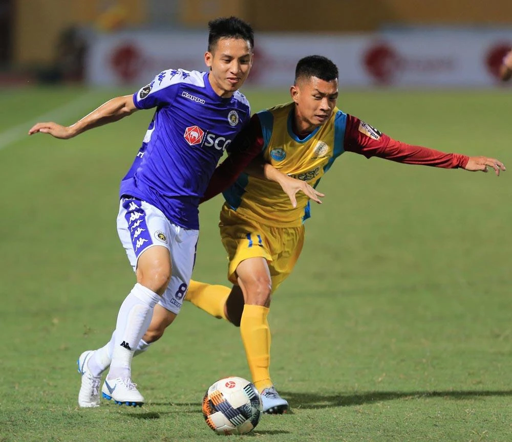 Cuộc đối đầu giữa Hà Nội FC và Khánh Hòa. ẢNH: VPF