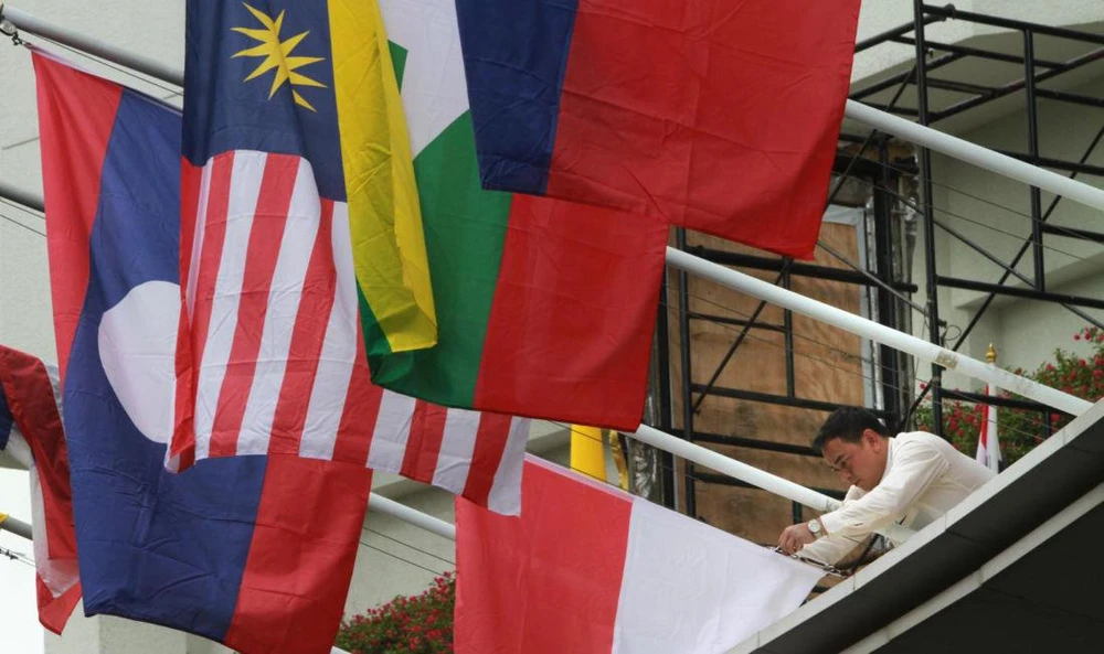Cờ các nước ASEAN được treo nhân Hội nghị Ngoại trưởng ASEAN lần thứ 52 tại Bangkok, Thái Lan. Ảnh: THE THAIGER