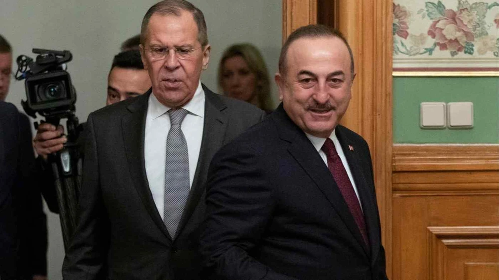 Ngoại trưởng Nga Sergei Lavrov và Ngoại trưởng Thổ Nhĩ Kỳ Mevlut Cavusoglu. Ảnh: REUTERS