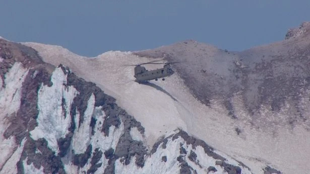 Phi công Chinook đã mạo hiểm giải cứu chàng trai bằng cách chỉ đáp phần đuôi trực thăng xuống mặt đất. "Cú hạ cánh mũi nhọn" này diễn ra trên đỉnh Hood cao hơn 3.000 m, trong khi phần còn lại của chiếc trực thăng vẫn đang lơ lửng trên không trung.