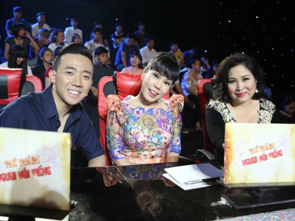 NSND Hồng Vân, nghệ sĩ Việt Hương và Trấn Thành trên ghế giám khảo gameshow Thử thách người nổi tiếng.