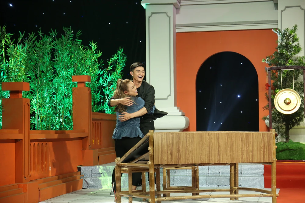 Ăn mừng trong sung sướng, Ngọc Hoa cùng nam vũ công điển trai này liền ôm chầm lấy nhau.