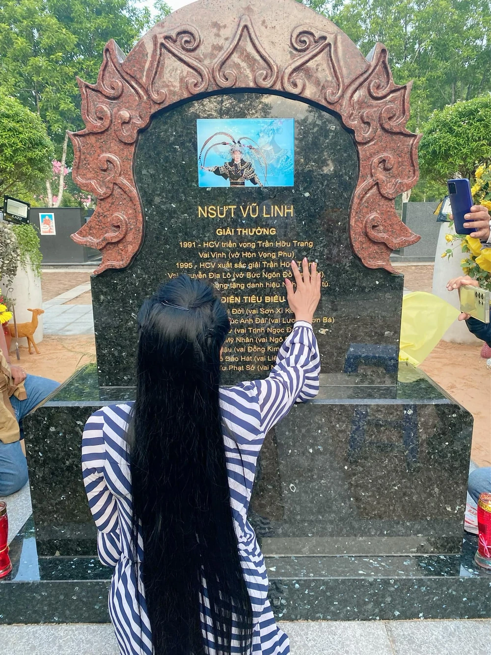"Các vị ấy đến lau chùi dọn sạch các lá khô, hoa khô hoặc bụi bám … có người nói với mình là họ đã có mặt từ 5h sáng. Trân quý lắm tấm lòng người mộ điệu đối với Vũ Linh, ông hoàng của sân khấu cải lương Hồ quảng" – Ngọc Huyền viết.