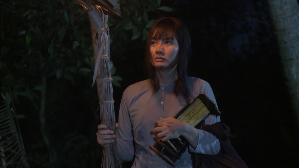 Trang dùng khổ nhục kế, tự đốt nhà khóc lóc xin Thảo tha lỗi. Ảnh: Sen Vàng