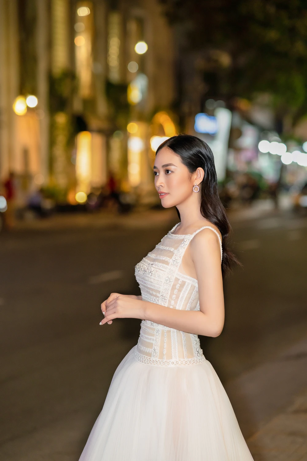 Trở lại trong sự kiện của hãng phim Giải phóng thực hiện, Mai Thanh Hà xuất hiện với chiếc váy đính ngọc trai xuyên thấu của nhà thiết kế Lê Thanh Hòa. Cô tiếp tục khiến người hâm mộ thổn thức khi khéo léo khoe trọn làn da trắng với chiếc váy hai dây tinh tế. Ngọc nữ điện ảnh khéo léo kết hợp với giày cao gót cùng tông màu tôn dáng.