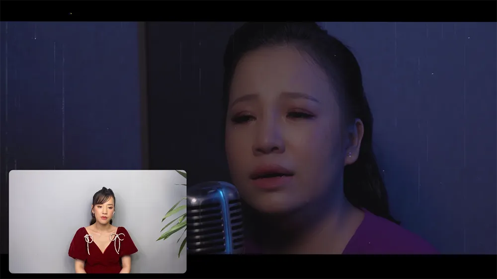 Trong MV, nữ diễn viên với đôi mắt đượm buồn, mặc bộ đồ bà ba giản dị, đây cũng là kiểu trang phục mà trước đây cố nghệ sĩ Phi Nhung rất hay mặc biểu diễn.