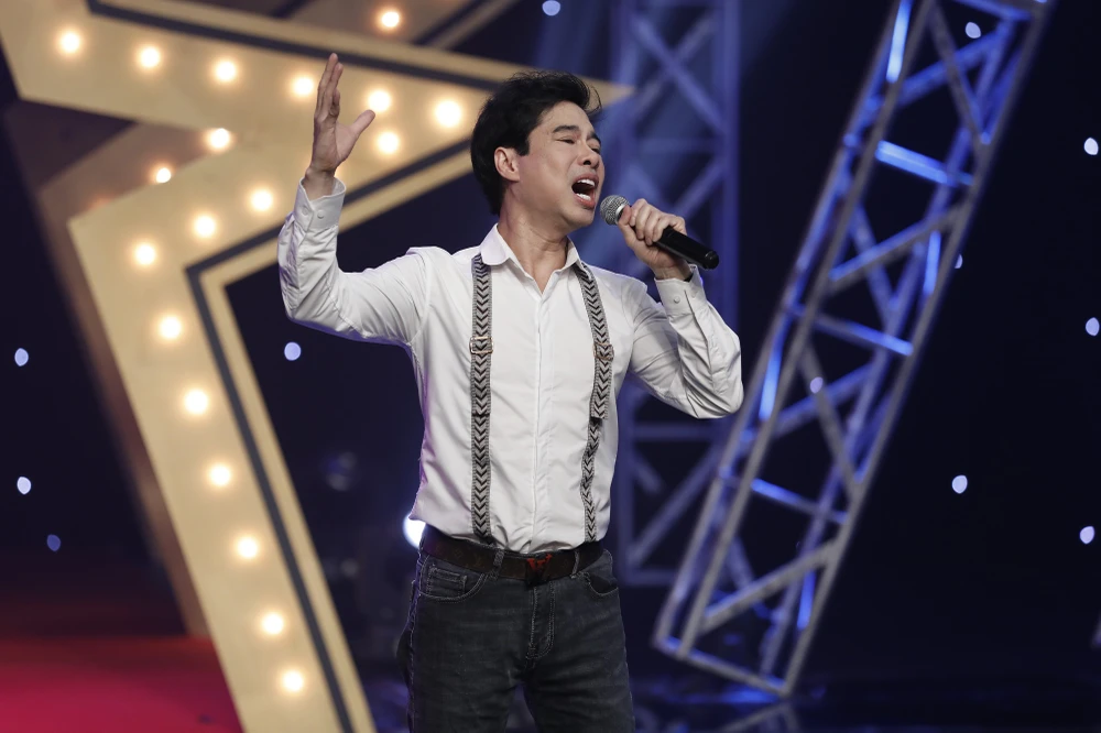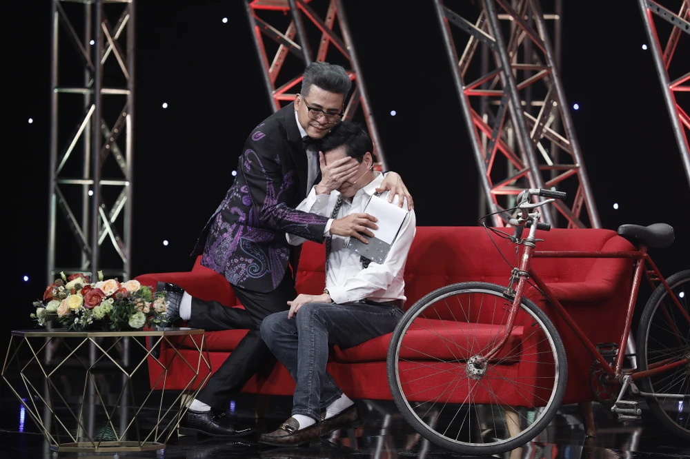 Danh ca Ngọc Sơn xuất hiện tại Ngôi sao đương thời với chiếc xe đạp. Ảnh: SEN VÀNG