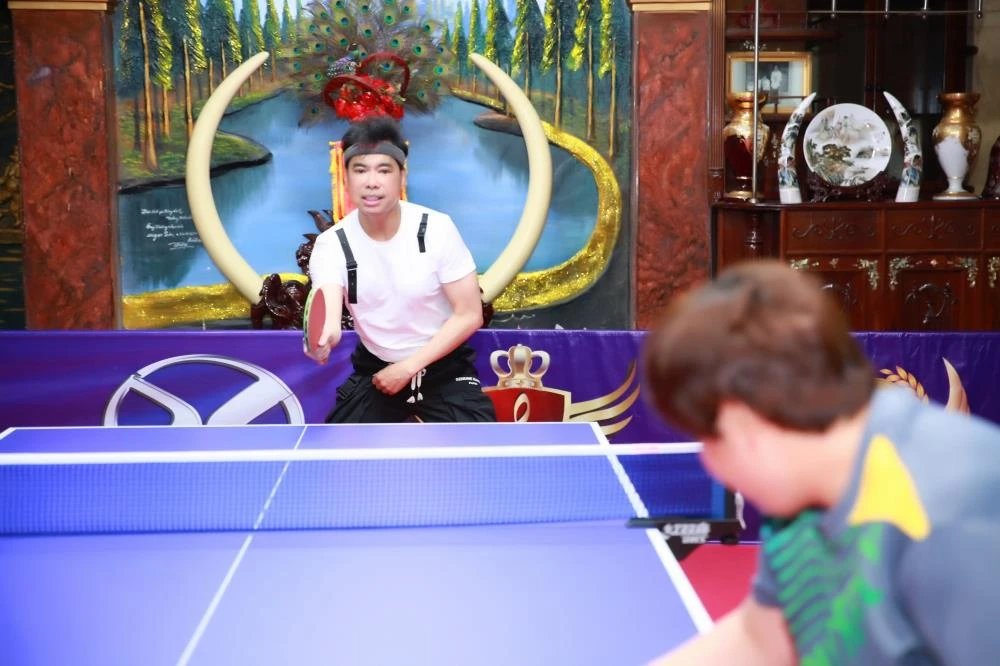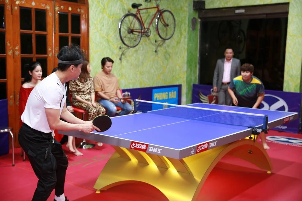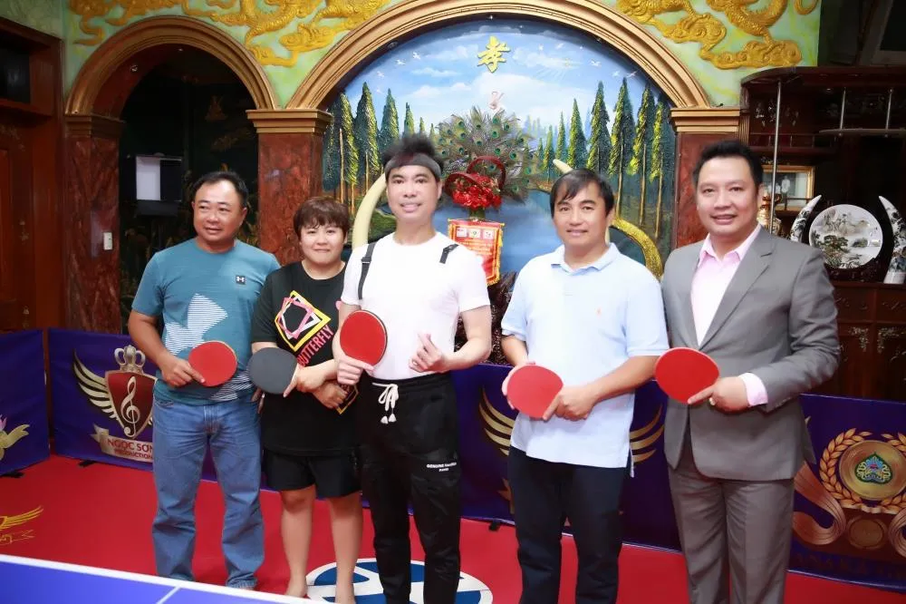 Không chỉ Hồ Thiện Vinh, Ngọc Sơn còn có dịp so tài cùng tuyển thủ Mai Hoàng Mỹ Trang – đương kiêm vô địch bóng bàn nữ 12 năm liền tại nhà nhân dịp ra mắt phòng tập.