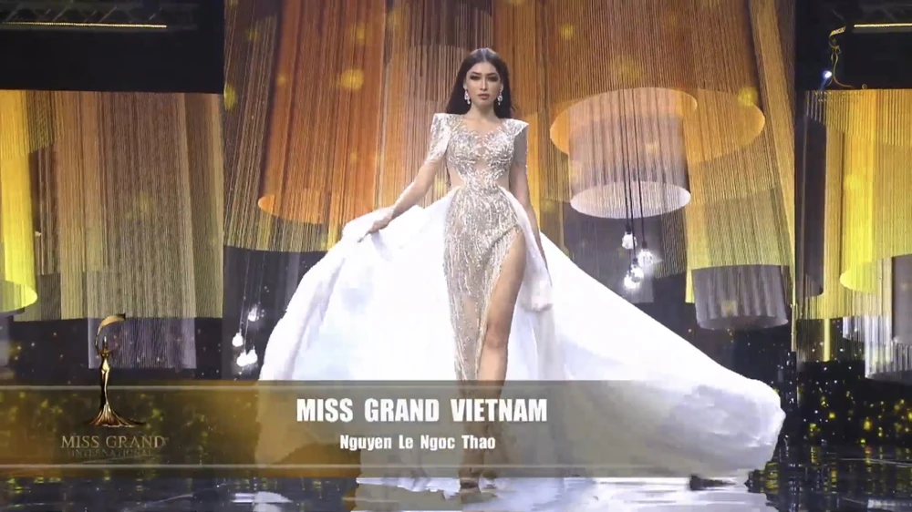 Tối 25-3, ngay khi vừa xuất hiện, Ngọc Thảo đã tự tin hô vang hai tiếng "Việt Nam" trong đêm Bán kếtMiss Grand International 2020 (Hoa hậu Hòa bình quốc tế 2020).