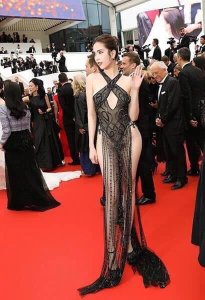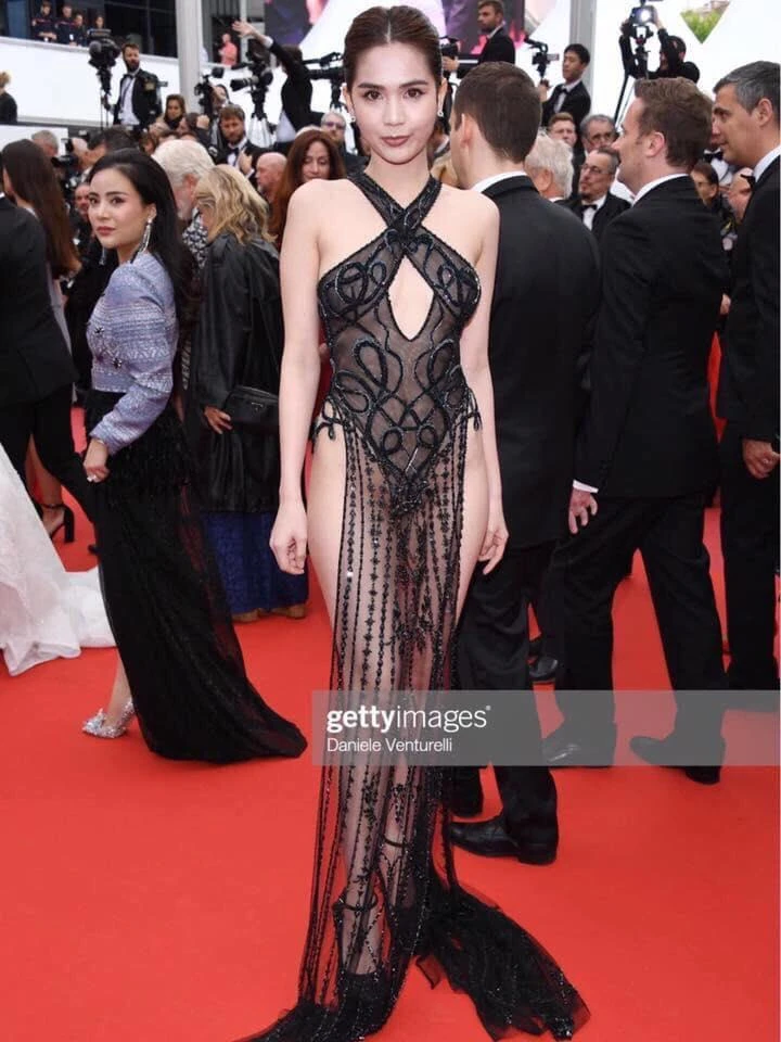 Trên thảm đỏ LHP Cannes ngày 19-5, Ngọc Trinh bất ngờ xuất hiện bên ông bầu Khắc Tiệp, không có hoạt động diễn xuất đáng chú ý, Ngọc Trinh vẫn có được tấm vé dự thảm đỏ Cannes. Giữa những nghệ sĩ tầm quốc tế, người mẫu Việt tìm cách chơi nổi, lố lăng bằng bộ váy xuyên thấu táo bạo.