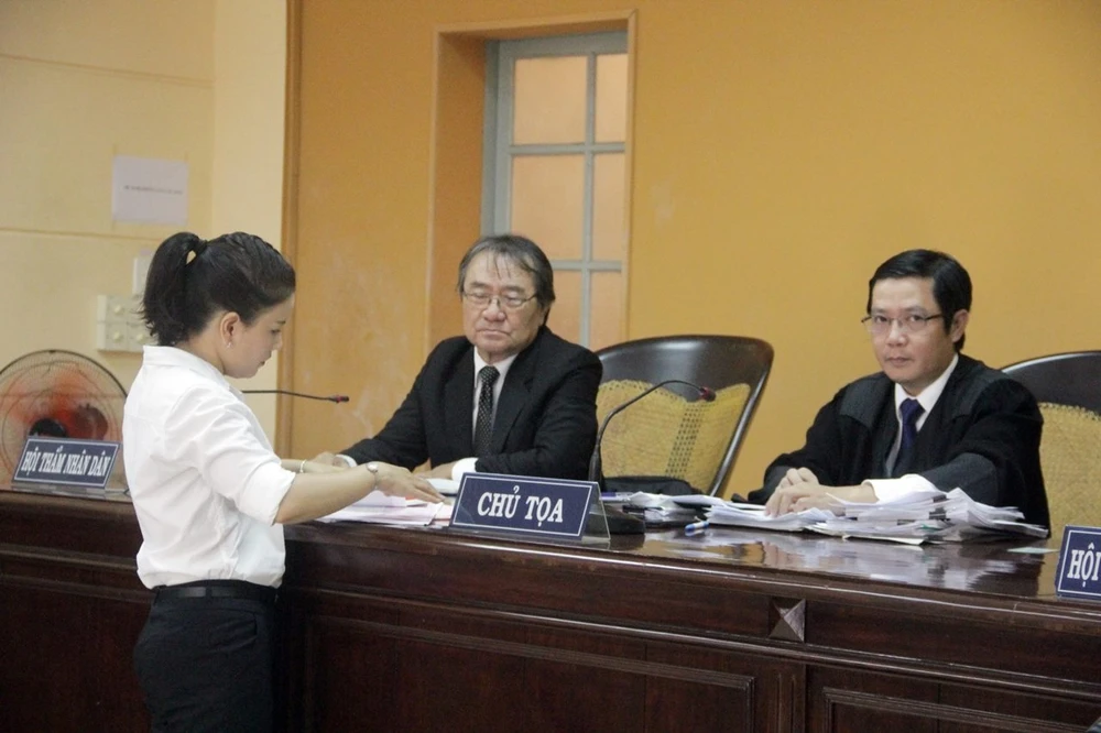 Ngọc Trinh giao nộp các chứng cứ mới thu thập cho HĐXX. Ảnh: YẾN LƯƠNG