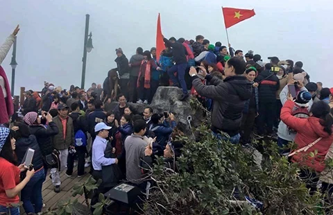 Đỉnh Fansipan đông đúc sau ngày có cáp treo. Ảnh: Internet