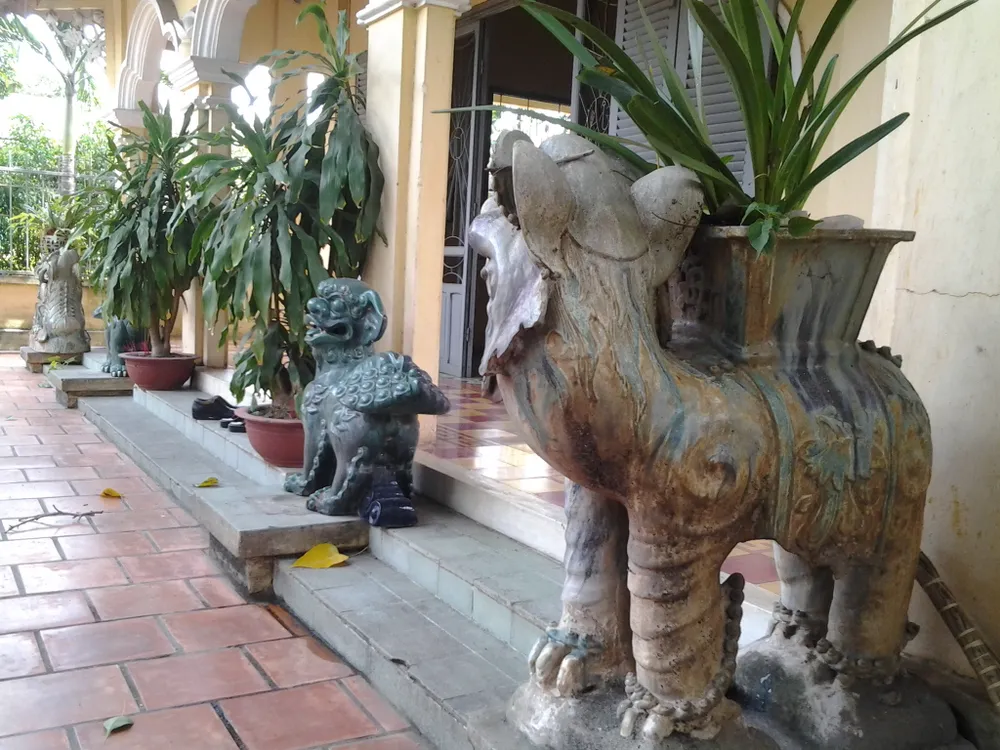 Khuôn viên chùa còn lưu giữ những cặp con nghê quý được các nghệ nhân của trường Mỹ thuật Biên Hòa xưa chế tạc bằng chất liệu gốm sứ, phủ một lớp men xanh...