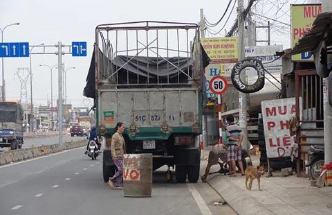 Hành vi chiếm dụng lòng đường vá vỏ xe sắp tới sẽ bị phạt nặng. Ảnh: LĐ