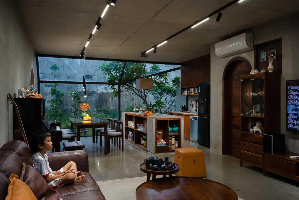 Phòng khách thoáng mát nhờ tầm nhìn ra khoảng sân nhỏ |