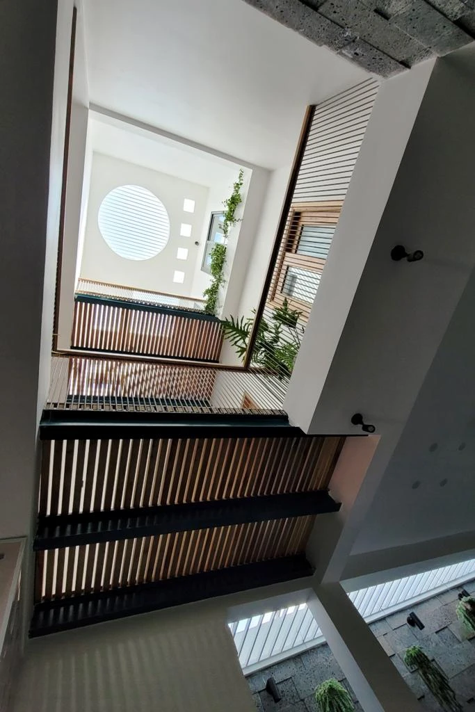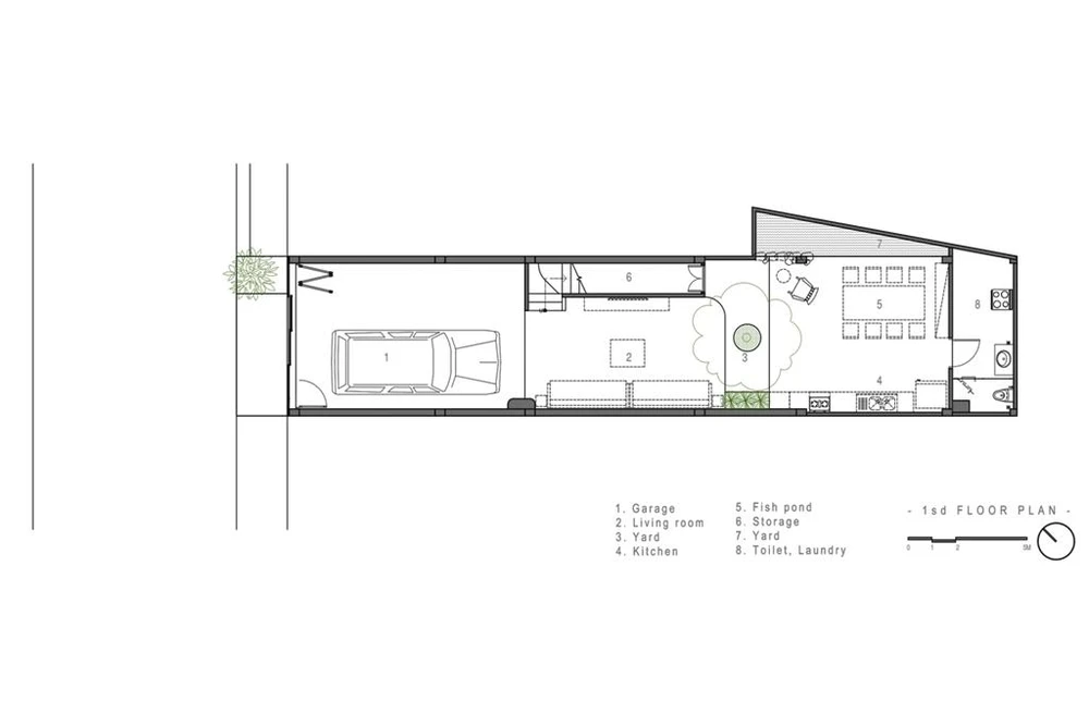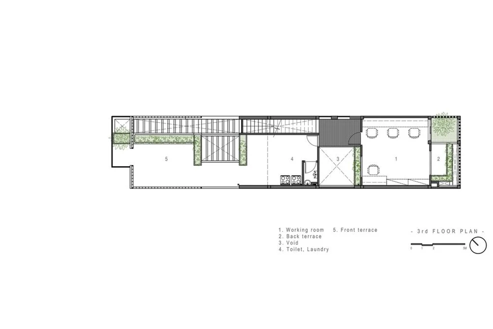 Các phòng chức năng trong nhà đều được tiếp xúc thông thoáng tự nhiên thông qua các khoảng thông tầng giữa và sau nhà. |
