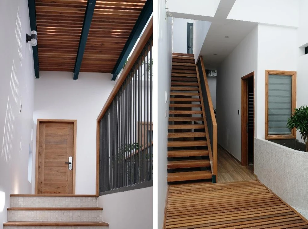 Ngôi nhà với phong cách hiện đại, đơn giản với tone màu chủ đạo trắng và gỗ tự nhiên. |