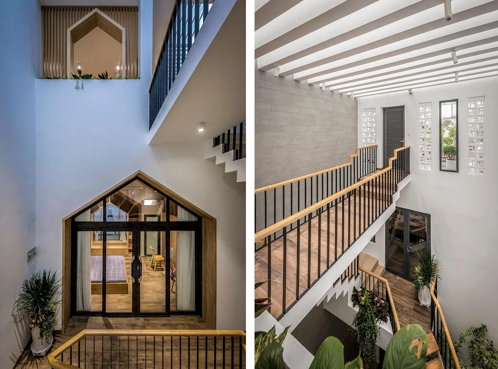 | Thiết kế lệch tầng, lệch thang làm các không gian trở nên gần nhau hơn. |