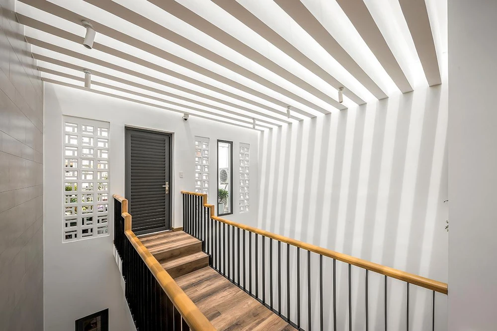 | Những khe sáng ở thông tầng tạo cảm giác thú vị khi di chuyển trên cầu thang. |