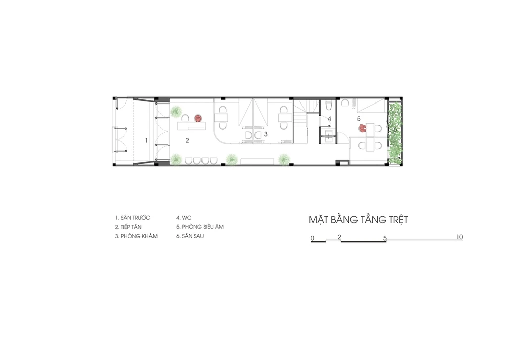 Theo kiến trúc sư, tầng trệt ngôi nhà đang để trống và được thiết kế dự kiến cho một phòng khám tư nhân trong tương lai, vì vậy toàn bộ không gian sống của gia chủ sẽ diễn ra chủ yếu ở các tầng một.