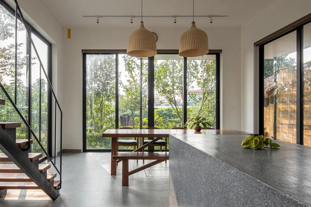 Hệ cửa đóng mở dễ dàng để thay đổi trạng thái, thuận tiện trong việc kết nối với hiên, ngoài ra còn tạo mảng vật liệu mạnh mẽ cho mặt chính.