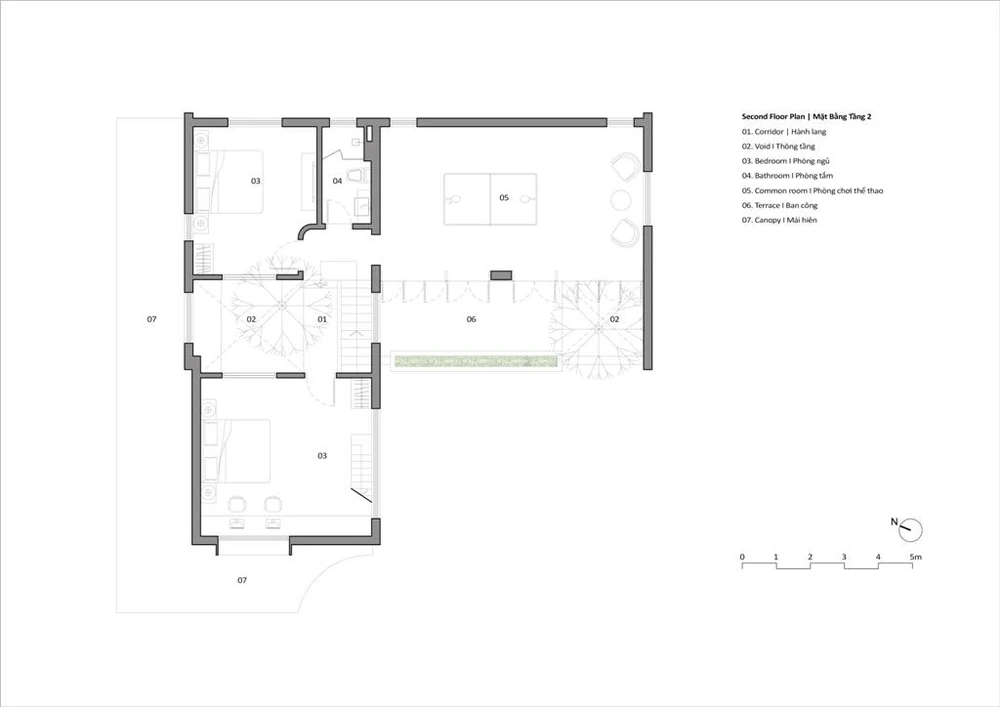 Tầng hai là nơi bố trí phòng ngủ của hai người con trai về chơi mỗi cuối tuần, và một phòng chơi bóng bàn cho cả gia đình.