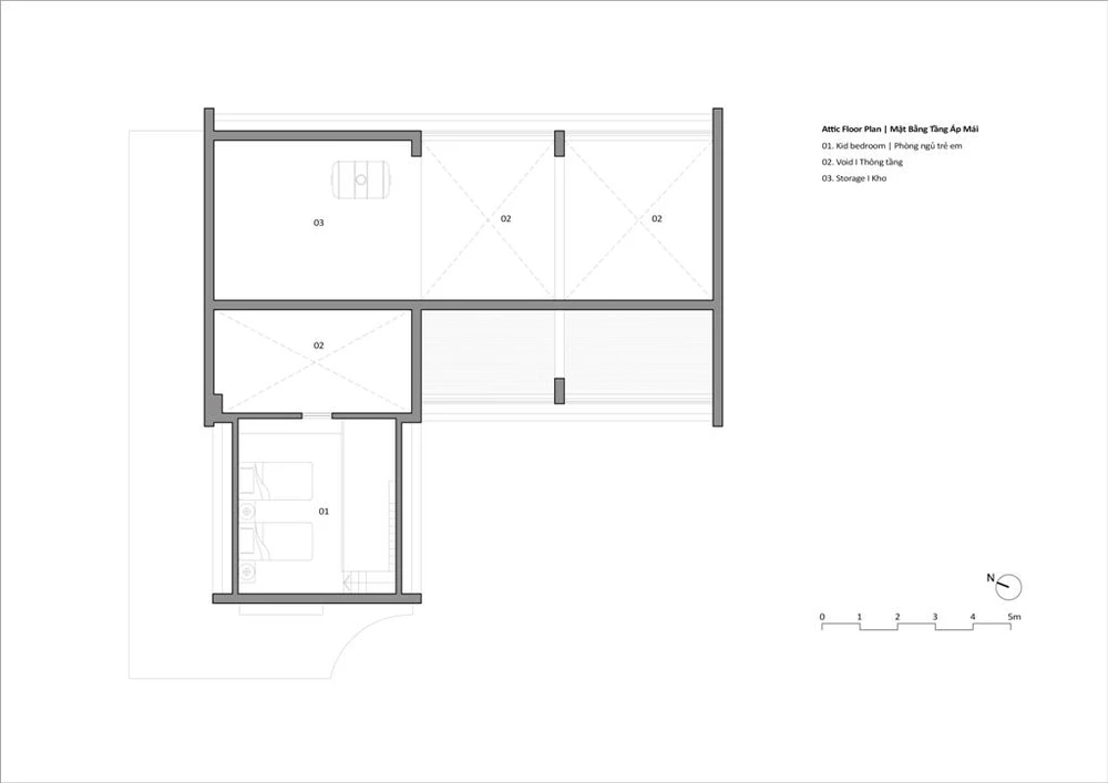Kiến trúc sư Chử Ngọc Anh đã tận dụng không gian mái dốc để làm một phòng áp mái nhỏ, phù hợp làm phòng ngủ và chơi cho trẻ con.