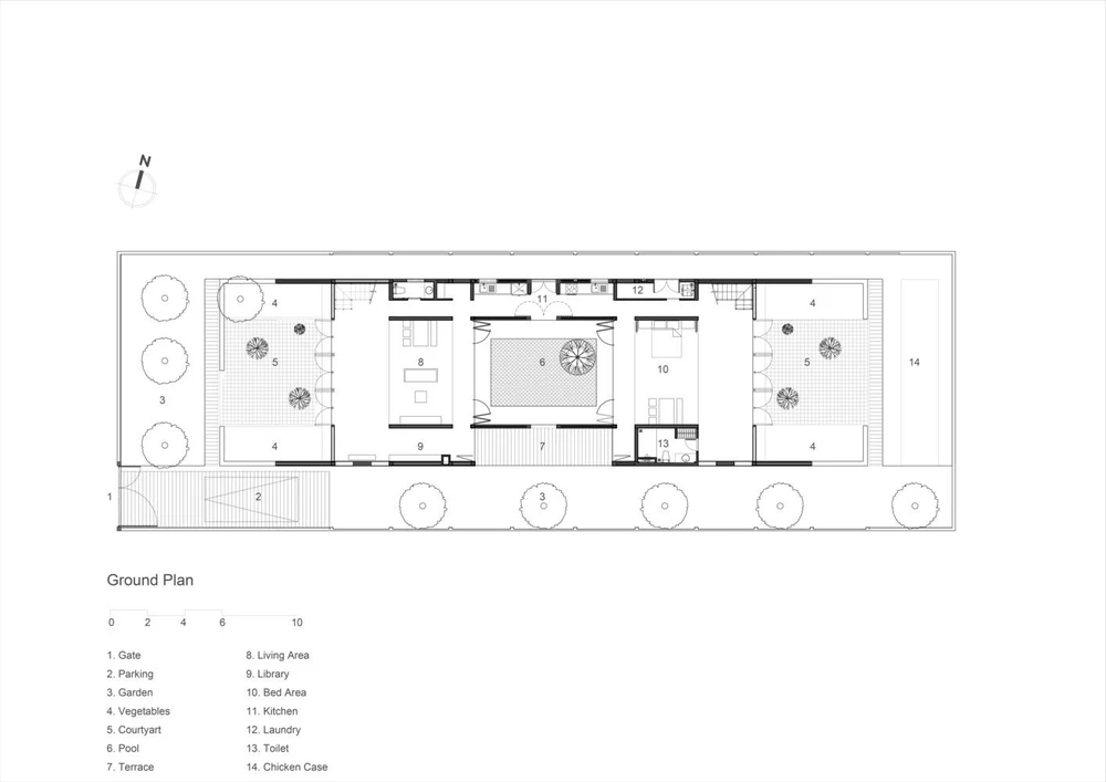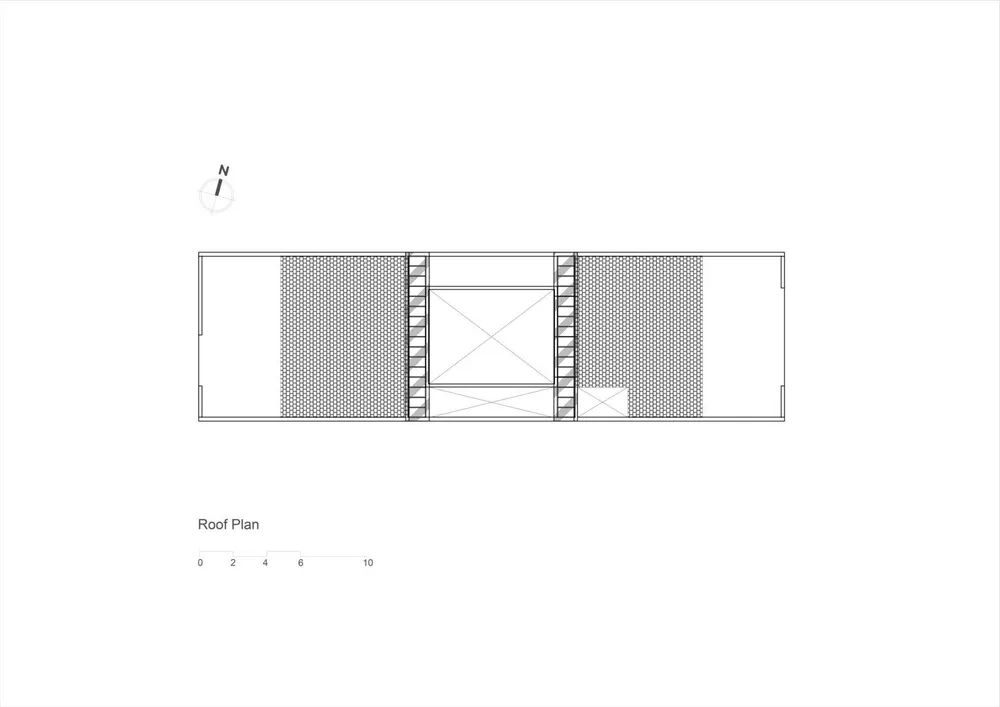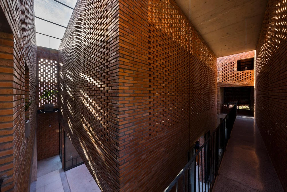 Nhóm thiết kế chia mái thành hai phần và có sân trong; sau đó phân bổ hai hành lang để kết nối mái nhà.