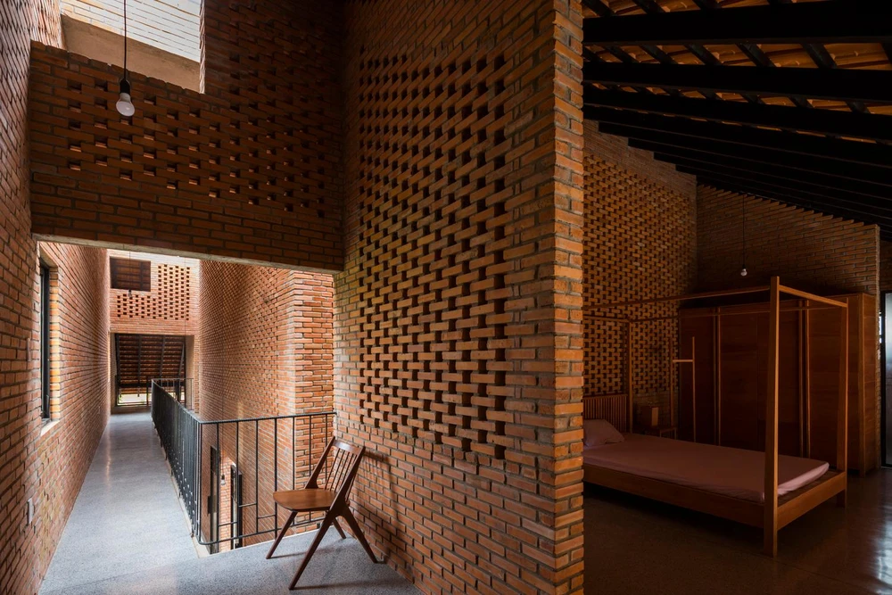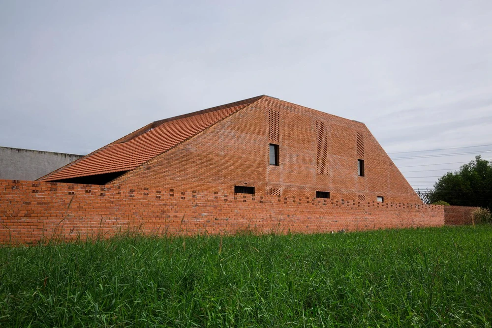 (PLO)- Long An house mang lại cảm giác thô mộc, bình yên bởi thiết kế cấu trúc ba gian, mái dốc, gạch đỏ.