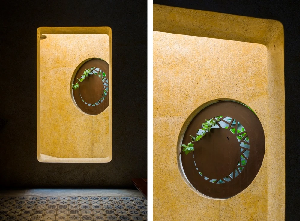 Giếng trời được thiết kế bằng lưới để lấy sáng và gió vào bên trong ngôi nhà.