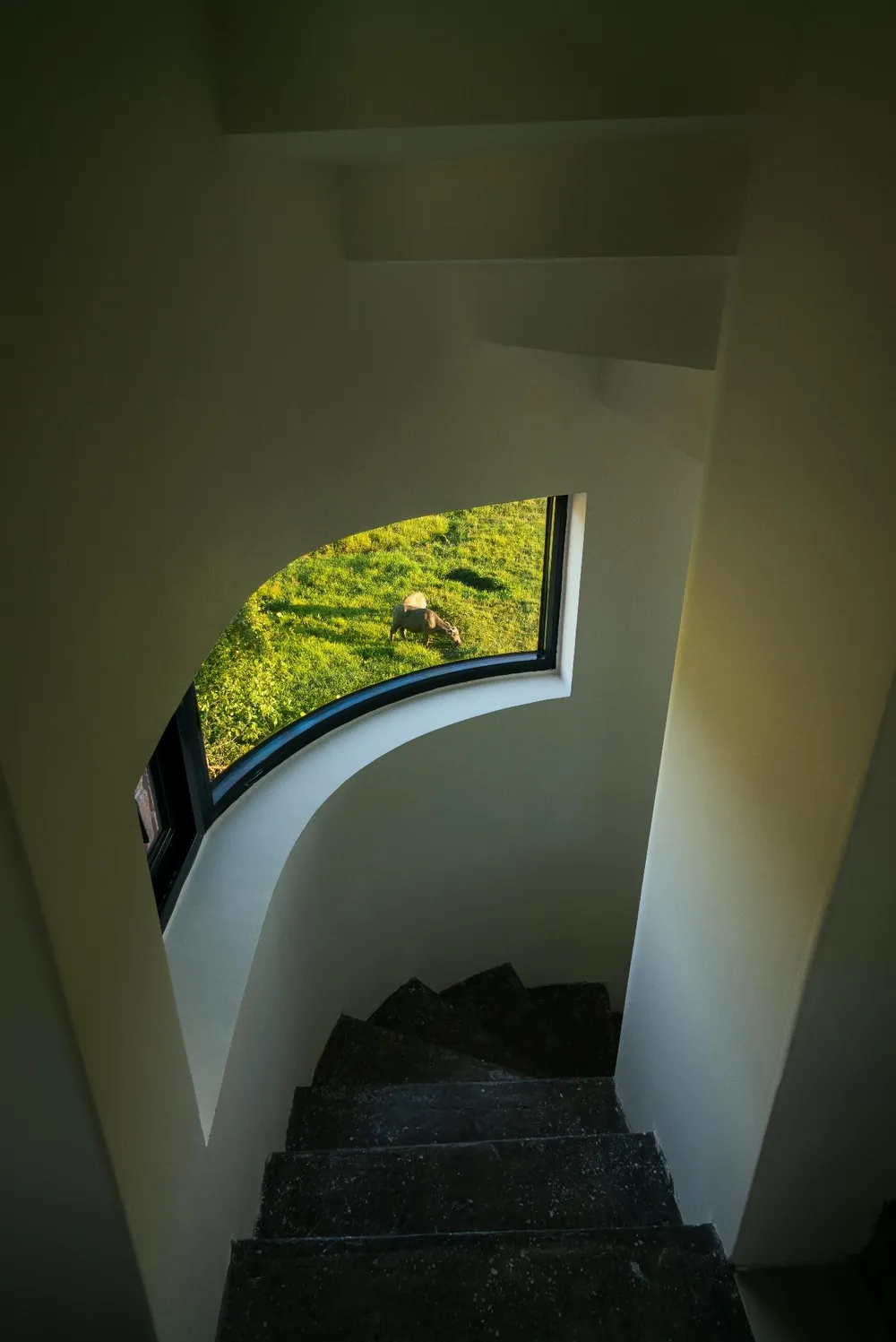 Bên trong nhà, kiến trúc sư thiết kế nhiều ô cửa sổ lớn bằng kính để có thể đón ánh sáng tự nhiên và gió. Vì vậy, từ bên trong nhà, các thành viên có thể ngắm cảnh mặt trời lúc bình minh hay khi hoàng hôn buông xuống.