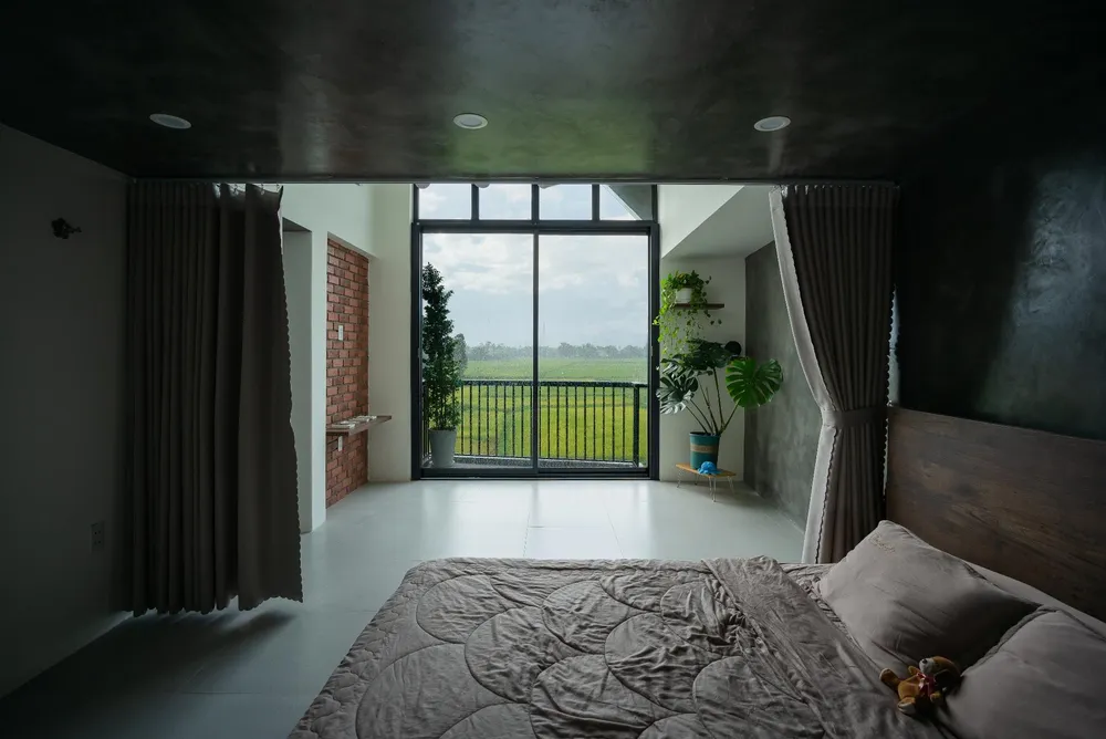 Phòng ngủ nhỏ và phòng ngủ master thiết kế tối giản, thông thoáng mỗi góc đều hướng tầm nhìn ra cánh đồng xanh mát.