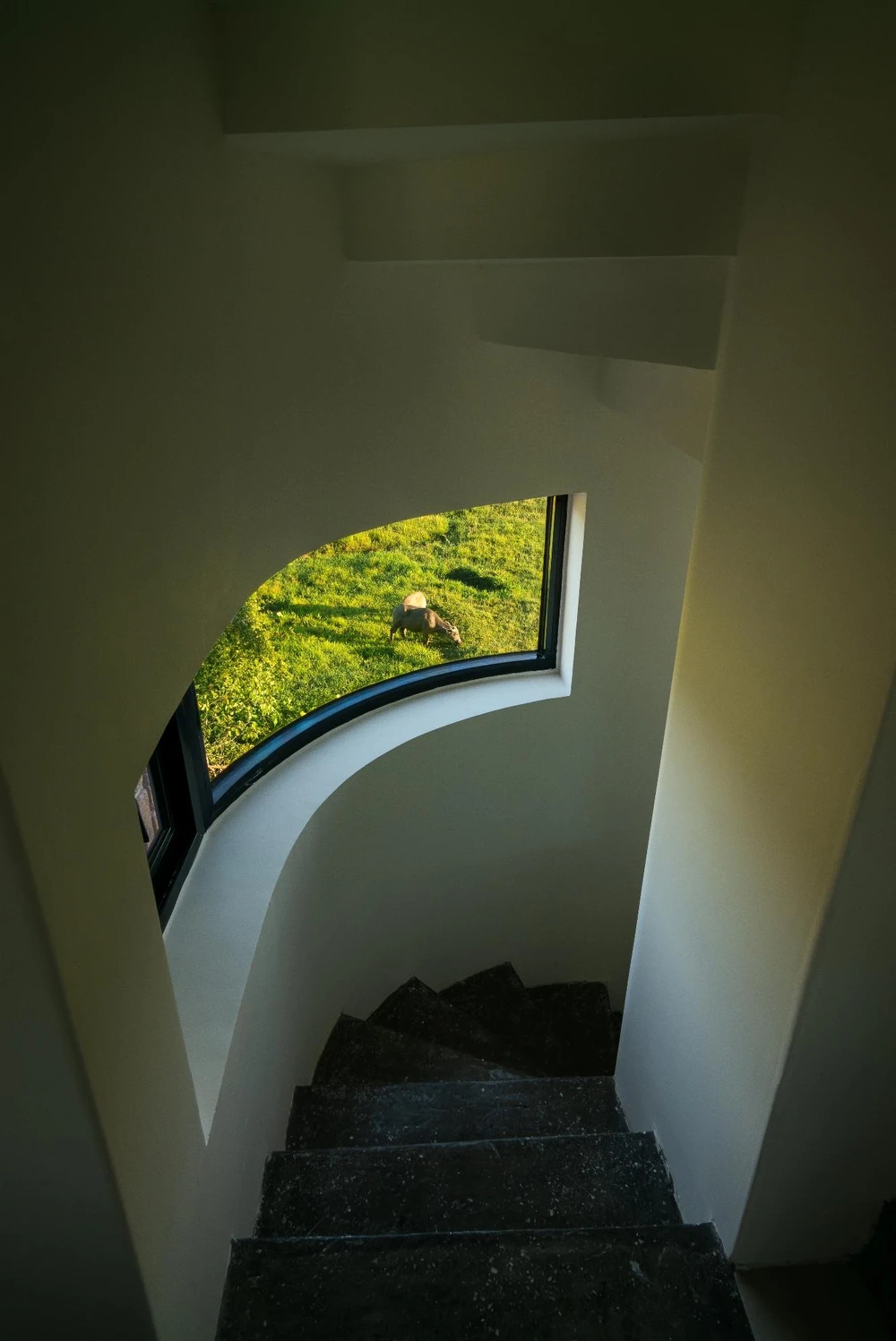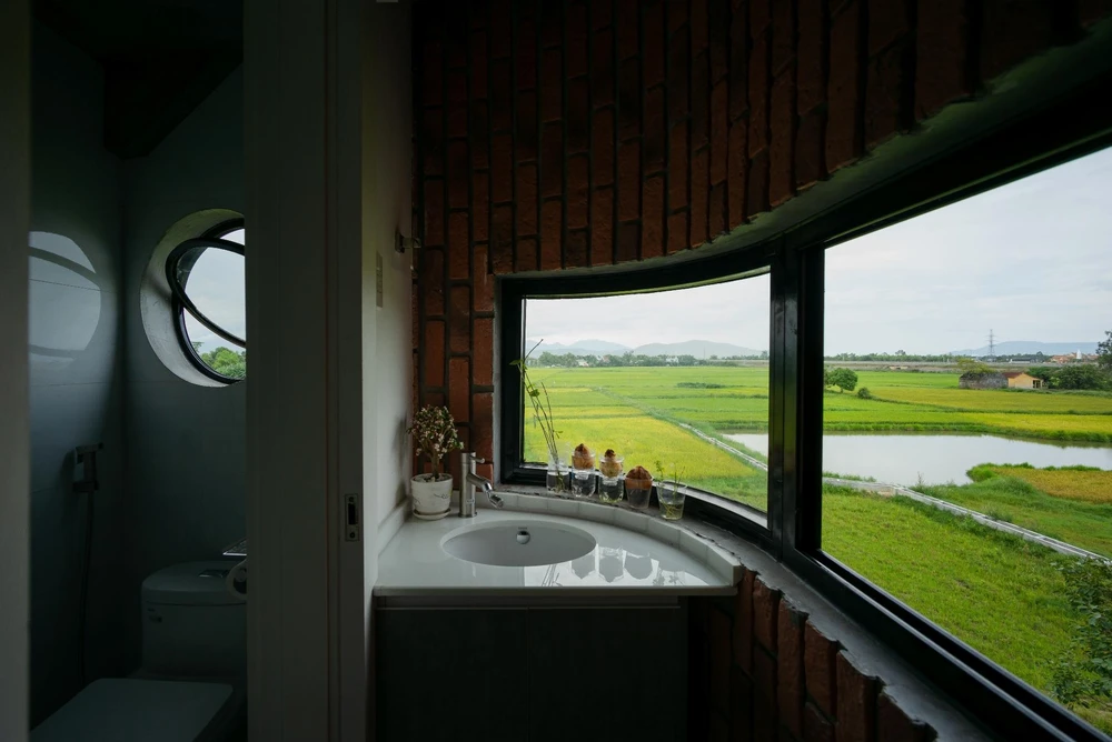 Ngoài thiết kế nhiều ô cửa sổ lớn, những ô tròn nhỏ cũng được bố trí vừa tạo điểm nhấn vừa để đón nắng và gió.