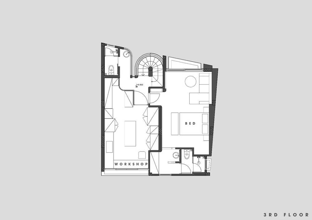 Tầng ba là tầng áp mái, gồm phòng ngủ master và không gian làm việc của gia chủ.