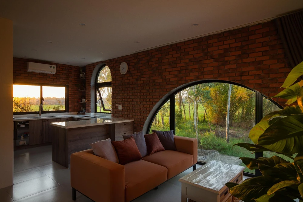 Giữa những viên gạch nung vẫn tạo được khoảng hở giúp ánh sáng chiếu vào bên trong nhà.