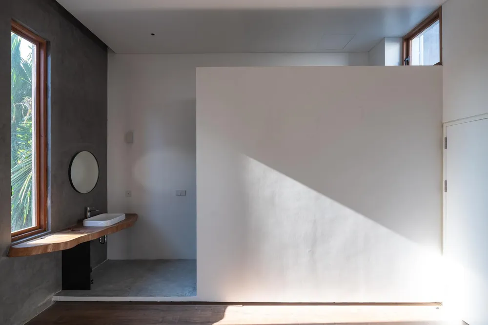 Công trình thiết kế theo cách đơn giản nhất, cơ bản nhất, hình học nhất để mang đến giải pháp cho một không gian sống hướng nội, hoàn toàn mở với thiên nhiên.