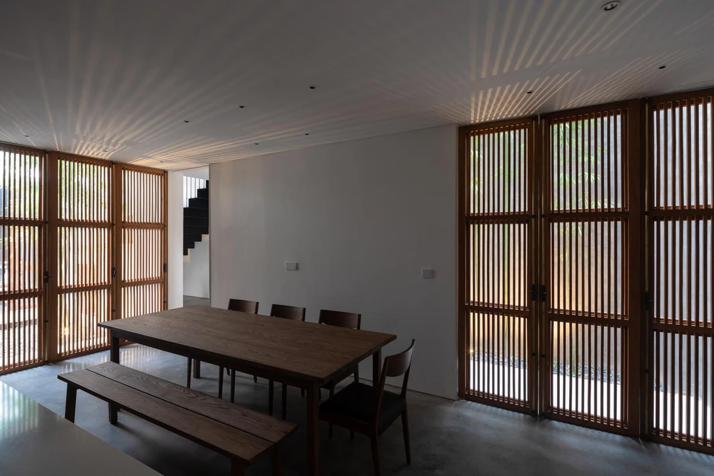 8x24house được tạo nên bởi sự bố trí bốn khối chức năng và ba khoảng sân phù hợp với công năng sử dụng.